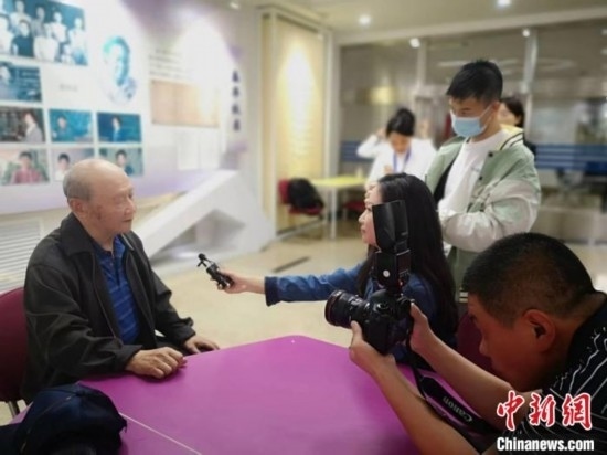 退休教師趙汝生與第二南開學校在校師生交流并接受媒體采訪。 劉文 攝