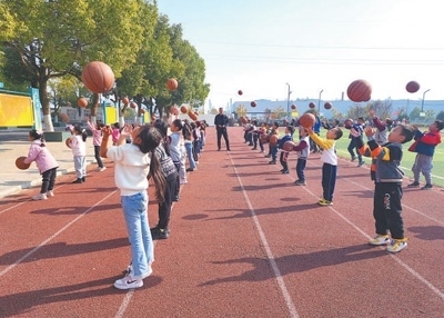 陶新明就在縣第五小學(xué)跟崗學(xué)習(xí)兩年,帶回了先進(jìn)的教學(xué)模式和理念?!霸诮搪?lián)體支持下,我們校區(qū)目前已有兩名專職體育老師。我們?cè)谡n后托管時(shí)間開設(shè)社團(tuán)課,為有愛好和特長(zhǎng)的學(xué)生系統(tǒng)地開設(shè)籃球、足球課,引導(dǎo)幫助他們?nèi)姘l(fā)展?!碧招旅髡f。