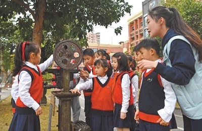 2022年3月,九龍坡區(qū)教委印發(fā)《關(guān)于推進(jìn)中小學(xué)集團(tuán)化辦學(xué)的意見》,謝家灣金茂小學(xué)成為謝家灣教育集團(tuán)一體化辦學(xué)成員校。謝家灣金茂小學(xué)的前身是重慶建設(shè)工業(yè)(集團(tuán))有限公司子弟學(xué)校,約1/3的教師曾是工廠職工。“基于學(xué)校情況,我們強(qiáng)調(diào)培養(yǎng)學(xué)生養(yǎng)成熱愛勞動(dòng)的習(xí)慣,形成陽光心態(tài)?!敝x家灣金茂小學(xué)黨總支書記楊永財(cái)指著校園內(nèi)擺放的老舊機(jī)床說,“重慶建設(shè)工業(yè)(集團(tuán))有限公司發(fā)展歷史厚重,學(xué)校積極挖掘紅色資源,給孩子們講好革命歷史,上好思政課?!?/p>