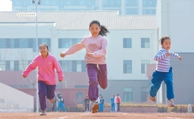 位于河北省雄安新區(qū)的雄安史家胡同小學,學生在操場上活動。雄安史家胡同小學是北京支持雄安建設、共享優(yōu)質教育資源的學校之一。中建八局供圖