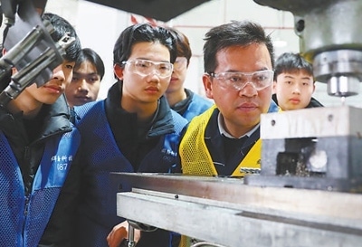湖南省永州市新田縣產(chǎn)業(yè)開發(fā)區(qū),新田縣職業(yè)中等專業(yè)學校學生在學習機床操作技術。劉貴雄攝(新華社發(fā))