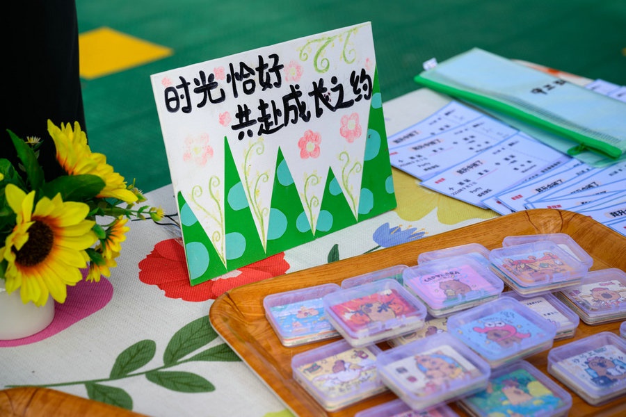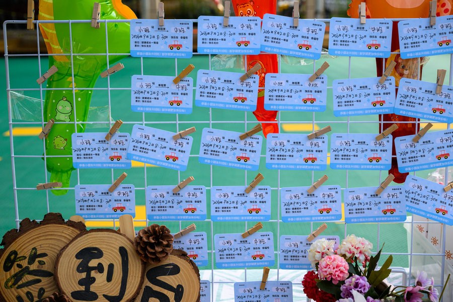小朋友在家長(zhǎng)的陪伴下,興高采烈走進(jìn)校園內(nèi)各個(gè)打卡地,打卡蓋章、拍照留念。