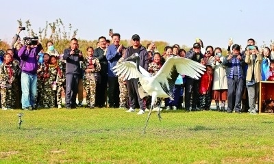 在河北秦皇島市鴿子窩公園,國家保護鳥類被放歸自然時,市民紛紛拍照記錄。新華社發(fā)