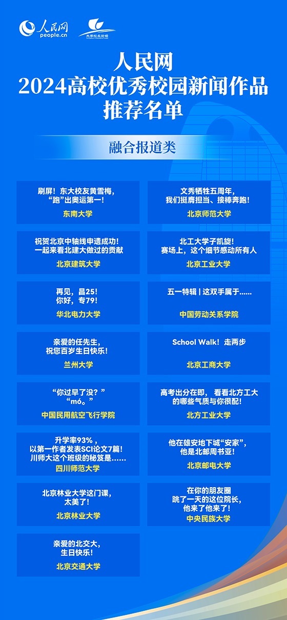 人民網(wǎng)2024年高校優(yōu)秀校園新聞作品發(fā)布 50所高校作品入選