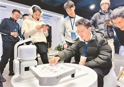 在位于北京亦莊的兩岸科創(chuàng)中心,張朝宣與一款名為“元蘿卜”的象棋機器人對弈,引得眾人圍觀。他說:“這是我第一次和AI下棋,很有趣。我每下一步,它都可以推算出它的勝率是多少,從而讓我及時知道哪步好或不好,能幫助我提高棋藝?!?/p>