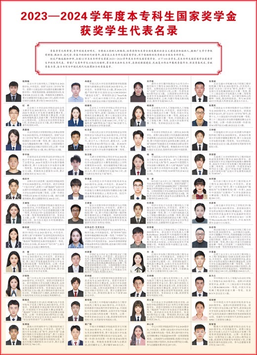 經(jīng)過(guò)嚴(yán)格選拔和評(píng)審,全國(guó)12萬(wàn)名本專科學(xué)生榮獲2023—2024學(xué)年度本??粕鷩?guó)家獎(jiǎng)學(xué)金。以下100名學(xué)生,是本專科生國(guó)家獎(jiǎng)學(xué)金獲獎(jiǎng)學(xué)生中的優(yōu)秀代表。希望廣大青年學(xué)生以他們?yōu)榘駱?,勇?dāng)排頭兵和生力軍,在推進(jìn)強(qiáng)國(guó)建設(shè)、民族復(fù)興偉業(yè)中展現(xiàn)青春作為、彰顯青春風(fēng)采、貢獻(xiàn)青春力量,奮力書寫為中國(guó)式現(xiàn)代化挺膺擔(dān)當(dāng)?shù)那啻浩隆?/p>