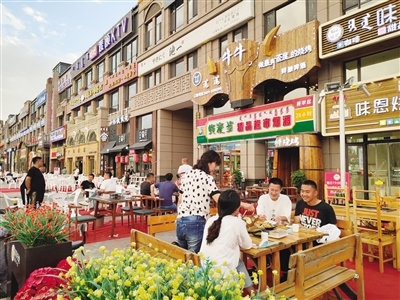 與大召濃厚的本土文化特色相比,惱包村是另外一種具有江南風(fēng)格的消遣之地,人們流連于它的小橋流水,在這里不僅大人們可以消遣,孩子們也有游玩的地方。旋轉(zhuǎn)木馬、跳跳床等,給孩子們增添了更多的歡樂。而在萬達(dá)花樣年華步行街,因為開放夜市,沿街商戶的營業(yè)時間延長到了晚上22時,這對于經(jīng)營水果、蔬菜生意的店老板閆先生來說無疑是好消息。“夜市才開了幾天,我們家的營業(yè)額就大幅度提升了,比之前要多出來1000塊錢,因為周邊就是居民小區(qū),大家出來閑逛,看到蔬菜、水果自然而然的就會挑選,我們的生意也就好做了。”閆先生說。