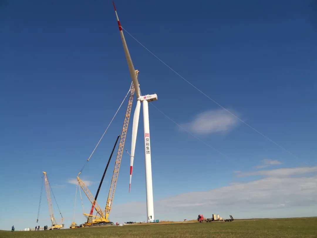 9月8日,第一臺風(fēng)機整體吊裝成功