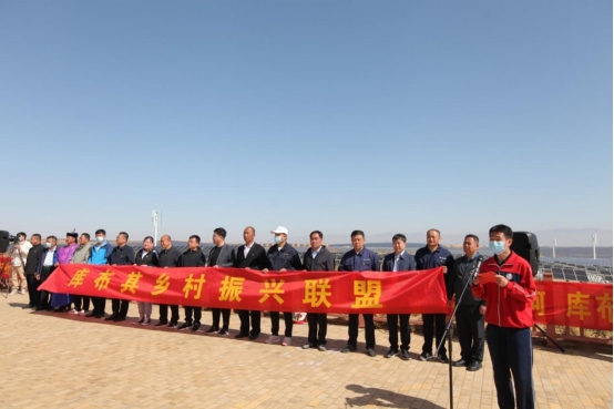 第18屆庫布其植樹節(jié)同步翻開了“鞏固脫貧攻堅(jiān)成果、推動(dòng)鄉(xiāng)村振興發(fā)展”的新篇章。在鄂爾多斯、杭錦旗各級(jí)黨委政府的領(lǐng)導(dǎo)下,億利集團(tuán)攜手鄂爾多斯市50多家中小企業(yè)、杭錦旗工商聯(lián)、國家稅務(wù)總局杭錦旗稅務(wù)局和相關(guān)的企業(yè)、公益機(jī)構(gòu)和社會(huì)愛心人士,聯(lián)合庫布其沙區(qū)的杭錦淖爾村、刀圖嘎查、沙日召嘎查、圖古日格嘎查、白音補(bǔ)拉嘎查、查干布拉嘎查、格更召嘎查,成立庫布其鄉(xiāng)村振興聯(lián)盟(以下簡(jiǎn)稱“聯(lián)盟”),活動(dòng)現(xiàn)場(chǎng)宣讀了《庫布其鄉(xiāng)村振興聯(lián)盟宣言》。聯(lián)盟將致力于重點(diǎn)推進(jìn)分布式光伏發(fā)電項(xiàng)目建設(shè),打造黃河文化、沙漠文化、民俗文化相結(jié)合的文化旅游村,進(jìn)一步發(fā)掘古如歌文化,建設(shè)好沙漠綠色生態(tài)公園,高質(zhì)量推動(dòng)板下現(xiàn)代農(nóng)牧產(chǎn)業(yè)發(fā)展,同時(shí)依托億利在庫布其打造起來的一二三產(chǎn)業(yè)融合發(fā)展的產(chǎn)業(yè)平臺(tái),切實(shí)推動(dòng)庫布其周邊村嘎查鄉(xiāng)村振興。國家稅務(wù)總局杭錦旗稅務(wù)局在活動(dòng)現(xiàn)場(chǎng)宣傳了稅務(wù)支持服務(wù)營商環(huán)境改善、減稅降費(fèi)、降碳擴(kuò)綠等惠民惠企政策,營造“稅企村”共同助力黃河流域生態(tài)保護(hù)與高質(zhì)量發(fā)展、推動(dòng)鄉(xiāng)村振興的新格局。