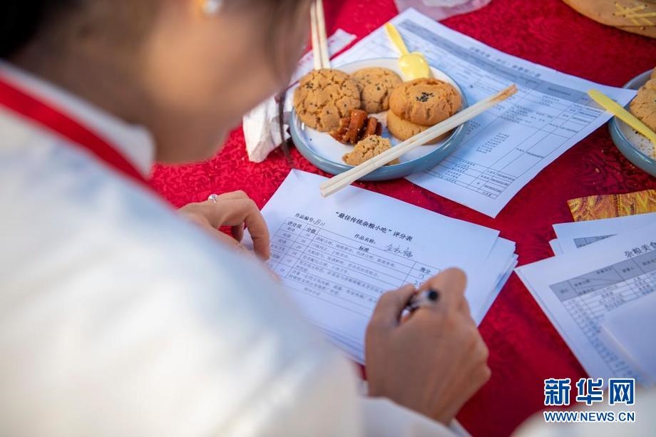9月22日,在位于山西省忻州市忻府區(qū)小檀村的雜糧美食節(jié)現(xiàn)場,評委在為食品打分。新華社記者 楊晨光 攝