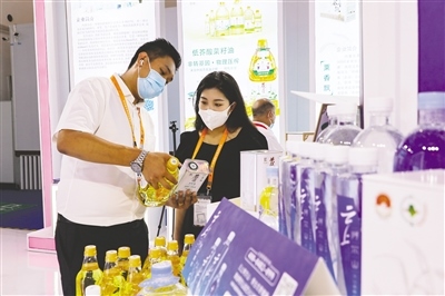 第二屆中國國際消費品博覽會(以下簡稱消博會)在海南省??谑信e辦。內(nèi)蒙古展館的綠色優(yōu)質(zhì)產(chǎn)品引來圍觀。蒙牛乳業(yè)、敖漢小米、科爾沁牛肉、芥花油等內(nèi)蒙古多個綠色優(yōu)質(zhì)品牌及產(chǎn)品亮相消博會。同時,70多家交易商組成內(nèi)蒙古展團(tuán)觀展。本屆消博會主題為“共享開放機(jī)遇共創(chuàng)美好生活”,于7月25日開幕,為期6天。(文/圖 本報記者 李永桃)