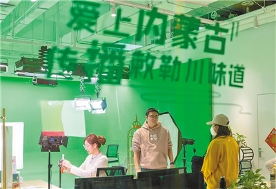 走進呼和浩特市金橋電子商務產(chǎn)業(yè)園二樓的“愛上內(nèi)蒙古正能量網(wǎng)紅孵化基地”,首先映入眼簾的,是擺滿興安盟大米、燕麥米、高原杏仁露等產(chǎn)品的內(nèi)蒙古味道展臺。這里,既是內(nèi)蒙古味道走出內(nèi)蒙古的一個起點,更是像張舟一樣的內(nèi)蒙古“網(wǎng)紅”們夢想開始的地方。