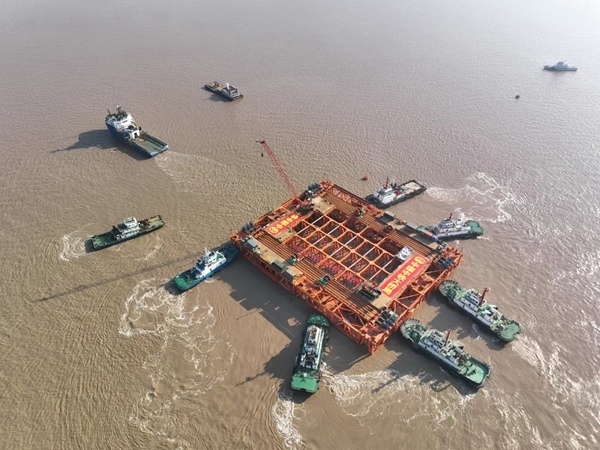 “自浮式鉆孔平臺定位后,我們將為平臺裝上8根將近百米的‘大長腿’,讓其能‘站’起來并屹立于海面之上。待平臺建好后,將把水上施工轉(zhuǎn)為陸地施工,既能縮短海上作業(yè)時間,也能確保施工安全質(zhì)量,為后續(xù)的6.3米世界最大直徑鉆孔樁施工提供有力保障。”中鐵大橋局甬舟鐵路西堠門公鐵兩用大橋總工程師王東輝說。