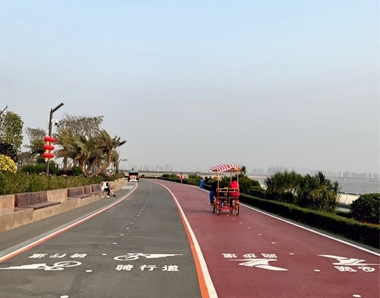 人民網(wǎng)東莞2月22日電 (記者趙雯 薛艷艷)濱海驛站坐落于廣東省東莞市濱海灣新區(qū),是東莞濱海長(zhǎng)廊首個(gè)建成的重要節(jié)點(diǎn),緊靠海岸線,南臨前海,隔海眺望南沙自貿(mào)區(qū)、中山翠亨新區(qū)。立于驛臺(tái)前,海風(fēng)習(xí)習(xí)拂來(lái),海天一線,日落降臨,浮光躍金。濱海驛站周邊建有廣場(chǎng)平臺(tái)、自行車道、沿海步道和園林綠化。濱海灣新區(qū)未來(lái)規(guī)劃建設(shè)一條長(zhǎng)約40余公里的濱海長(zhǎng)廊,以“運(yùn)動(dòng)廊+人文鏈+活力岸”為建設(shè)目標(biāo),打造生態(tài)海堤,不僅為游客提供親水體驗(yàn),同時(shí)也為鳥類、兩棲類動(dòng)物提供生境及遷徙通廊。