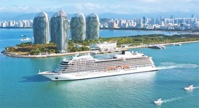 郵輪從三亞鳳凰島國(guó)際郵輪港離港出海。葉龍斌攝(影像中國(guó))