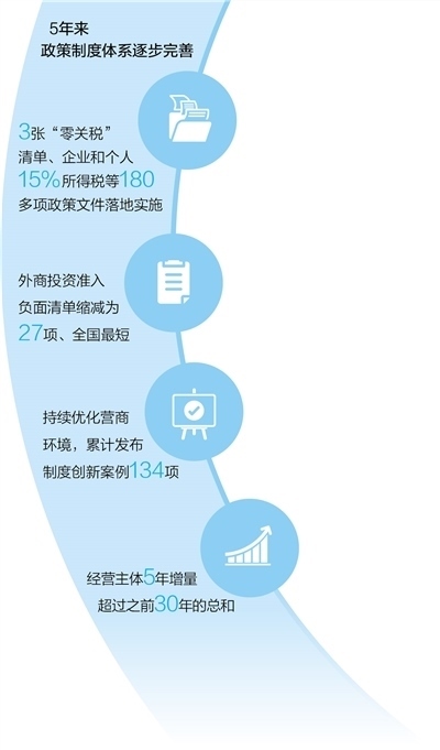 持續(xù)優(yōu)化的營(yíng)商環(huán)境是海南自貿(mào)港建設(shè)的重要支撐。5年來(lái),海南深入推進(jìn)營(yíng)商環(huán)境建設(shè),持續(xù)打造法治化、國(guó)際化、便利化和公平、透明、可預(yù)期的營(yíng)商環(huán)境。