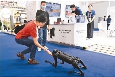 第三屆中國國際消費(fèi)品博覽會科技感十足,參展的各家中國企業(yè)將“科技感”滿滿的產(chǎn)品展示出來,讓觀眾在消博會上與前沿的國產(chǎn)科技零距離接觸,體驗(yàn)國產(chǎn)“黑科技”。圖為4月13日,觀眾跟科大訊飛展出的機(jī)器狗互動。新華社記者 楊冠宇攝