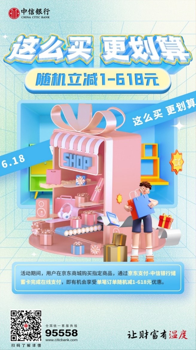 一年一度的“618”已拉開(kāi)序幕。中信銀行表示,將繼續(xù)豐富用卡環(huán)境,為客戶提供優(yōu)質(zhì)購(gòu)物場(chǎng)景和體驗(yàn),以“促消費(fèi)、惠民生”為使命,助力萬(wàn)千客戶享受超值生活。