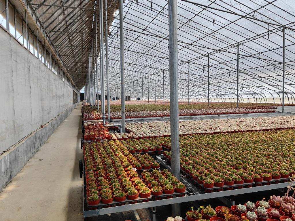 蘆李村的一處花卉大棚內,各種多肉植物整齊擺放。新華社記者 陳國峰 攝
