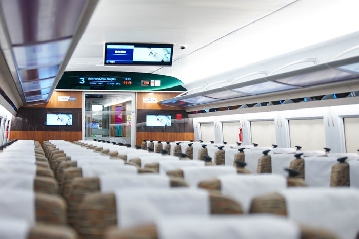 復(fù)興號亞運智能動車組列車車廂。上海鐵路局融媒體中心供圖