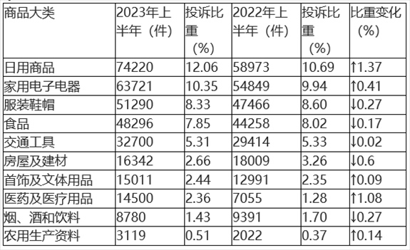 2023年上半年全國消協(xié)組織受理投訴情況分析