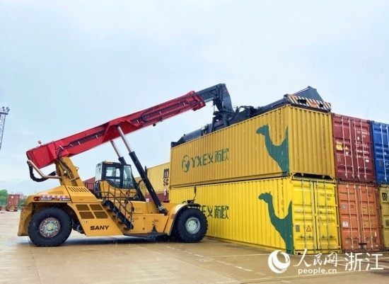 來到義烏鐵路口岸,往來車輛川流不息。繁忙運作的堆場內(nèi),義烏市陸港鐵路口岸發(fā)展有限公司工作人員何江橋正操作一臺碩大的集裝箱正面吊,將一個個海關(guān)查驗后的集裝箱送至龍門吊下,等待裝上即將發(fā)車的“義新歐”中歐班列。