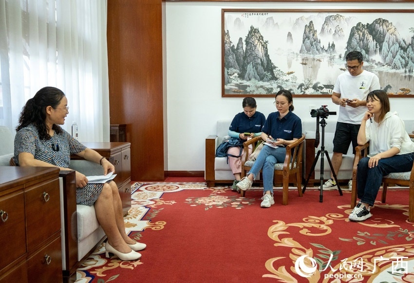 采訪團在廣西民族大學(xué)采訪教師代表。人民網(wǎng) 嚴立政攝