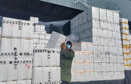 “車來嘍!”“往里倒,再倒,好,裝車!”盡管天氣寒冷,市場里卻是一片火熱的繁忙景象。從各地運(yùn)來的蔬菜陸續(xù)進(jìn)場,工作人員手腳麻利地將成箱的蔬菜從大車上卸下再裝上小車,隨后,這些蔬菜將運(yùn)往寧夏各地小型批發(fā)市場和商超?!盀榱耸卟嗽谶\(yùn)輸過程中不被凍壞,我們給蔬菜蓋了3層棉被,確實(shí)下了一番功夫?!鄙虘赳R伏珍說。