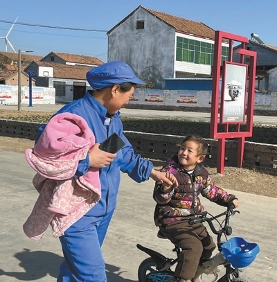 從劉攀登的醬菜廠出來,記者碰上村民張玉霞牽著孩子回家吃午飯。