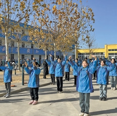 麥仁學校的學生在做課間操。