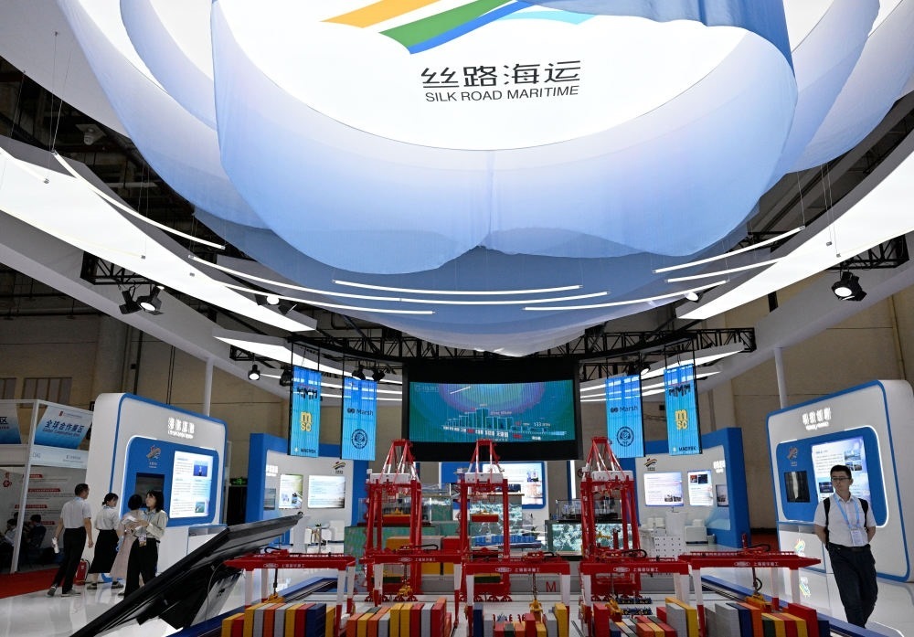 這是2024年9月8日拍攝的投洽會展現(xiàn)中國與“一帶一路”共建國家經(jīng)貿(mào)往來的絲路海運展館。新華社記者 魏培全 攝