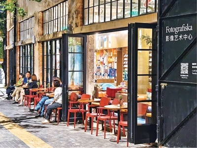 蘇州河邊,由老建筑改造的富圖格雅影像藝術(shù)中心準(zhǔn)點(diǎn)營(yíng)業(yè),工作人員搬出一張張座椅,沿老建筑磚紅色墻體一字?jǐn)[開(kāi)。市民游客坐在椅子上休憩,沉浸在濃厚的藝術(shù)氛圍中。富圖格雅公司負(fù)責(zé)人江美玲說(shuō),擺設(shè)座椅的想法,源自一本《營(yíng)商護(hù)照》。