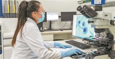 天津市腫瘤醫(yī)院空港醫(yī)院醫(yī)務(wù)人員在化驗(yàn)樣本。