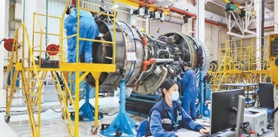 福建自貿(mào)試驗(yàn)區(qū)廈門片區(qū),航空維修基地的工程師在進(jìn)行發(fā)動(dòng)機(jī)維修作業(yè)。