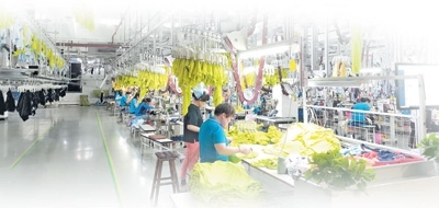 福建泉州鵬泰服飾有限公司生產(chǎn)車間。