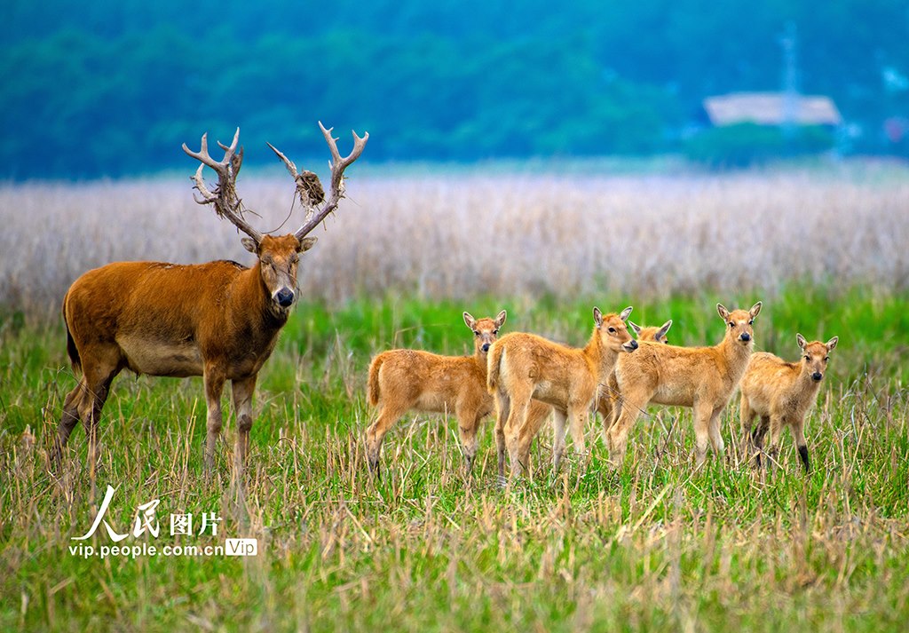 近年來,條子泥濕地生態(tài)環(huán)境越來越好,國家一級保護(hù)動(dòng)物野生麋鹿超過400頭,今年自然產(chǎn)仔達(dá)50頭以上,種群數(shù)量得到有效恢復(fù)。孫家錄攝(人民圖片網(wǎng))