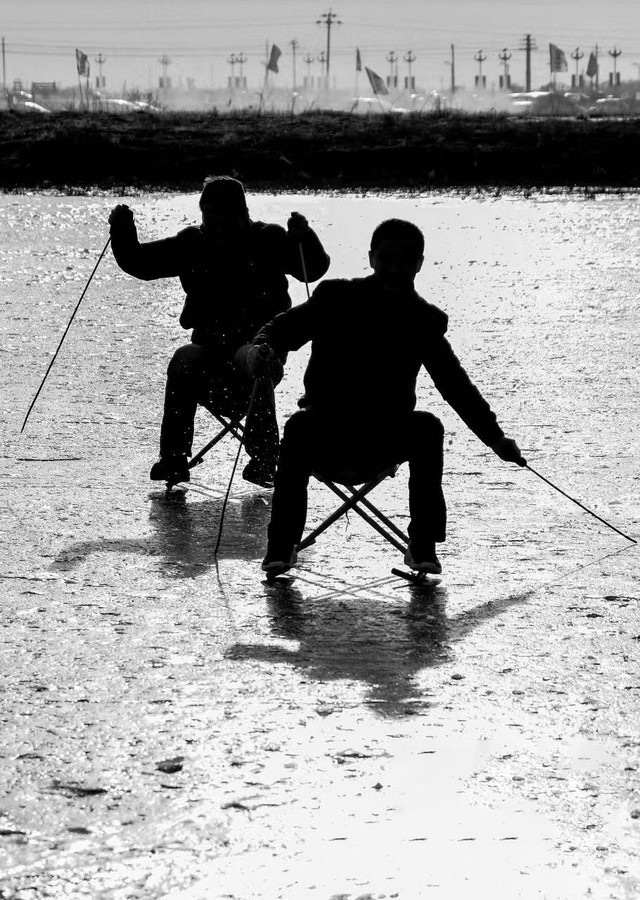?、俣冻怎r魚;②冬釣。