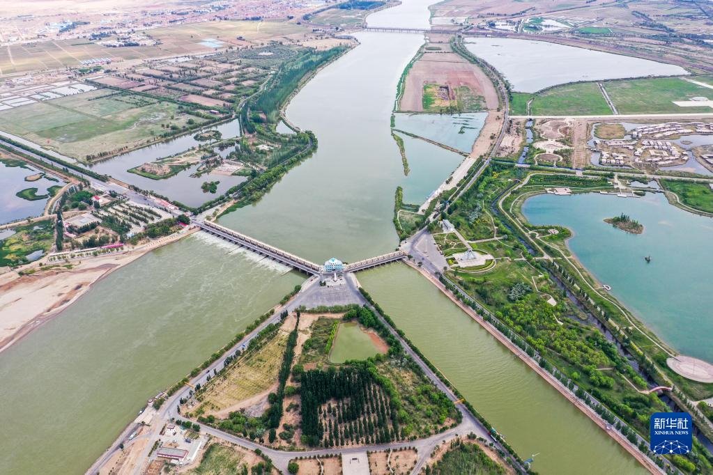 這是三盛公水利樞紐(無人機(jī)照片,6月6日攝)。