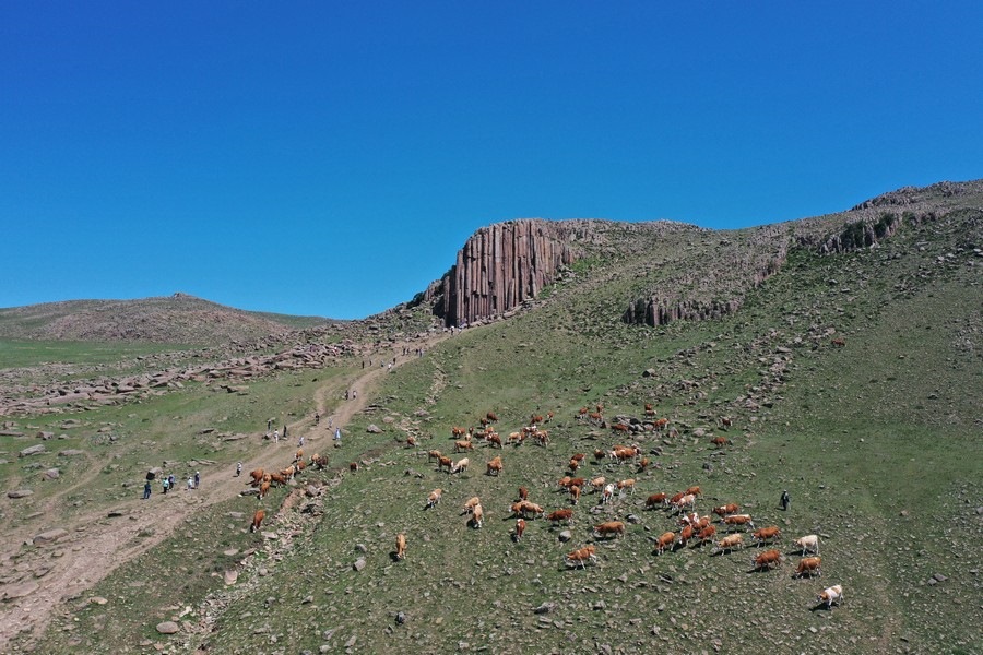 7月25日,眾多游客在內(nèi)蒙古錫林郭勒盟太仆寺旗的石條山景區(qū)游覽。
