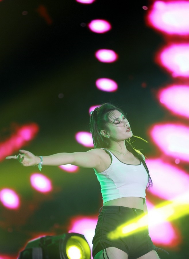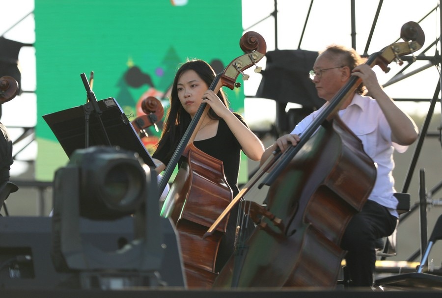 青山攬翠,林海歡歌。8月19日,內(nèi)蒙古烏蘭察布“森林之韻”蘇木山音樂季在蘇木山腳下的店子鎮(zhèn)盧家營村繼續(xù)上演。空中視角下的音樂季演出現(xiàn)場,燈光璀璨,人頭攢動。樹樂隊、翅膀VS呼哈、劉文天、巫啟賢、陳雅森等演藝人員和北京藝鯤交響樂團,為游客帶來一場場視聽盛宴。