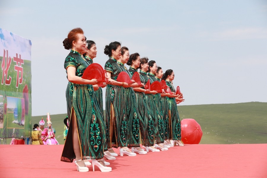 活動現(xiàn)場亮點紛呈,除了“千人鍋”牦牛宴,傳統(tǒng)的賽馬、摔跤等項目輪番上演,身著傳統(tǒng)服飾的演員還帶來精彩的歌舞表演,安代舞、旗袍秀、晉劇等,贏得了觀眾陣陣歡呼。