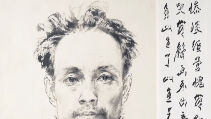 與病重時疲憊的狀態(tài)截然不同,王子武在畫作中刻畫自己的形象精神飽滿,飛揚的發(fā)絲充滿朝氣。畫作《子武自寫》中,人物眼神堅定,造型簡潔、穩(wěn)定,充滿力量感。整幅畫作表現(xiàn)了王子武將生命奉獻(xiàn)給繪畫的自信和決心。