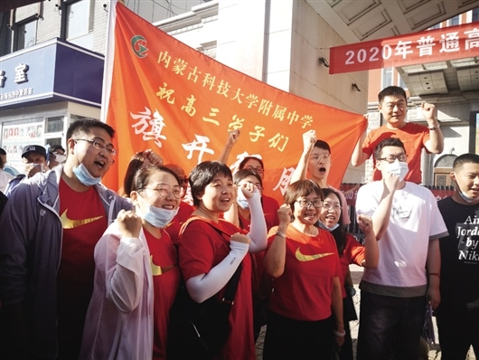 為學(xué)生送考是包四中的傳統(tǒng)。當(dāng)日7時(shí)許,身著“包四必勝”紅色T恤的高三年級(jí)組長楊文亮早早來到考場為學(xué)生送考。這名任教20年的教師已經(jīng)歷過6次高考,每一次他都要親自將學(xué)生送上考場。與他同來的十幾名包四中教師或與學(xué)生擊掌,或向他們打著必勝的手勢(shì),激勵(lì)大家沉著應(yīng)考,考出水平。楊文亮說:“在每場考試結(jié)束前,老師們都會(huì)提前來到現(xiàn)場,等著同學(xué)們出來,給他們打氣,幫助他們調(diào)整情緒。有時(shí)學(xué)生會(huì)說考試題目比較難,這時(shí)老師們就會(huì)告訴學(xué)生不要過分焦慮,正常發(fā)揮出自己的實(shí)力就好,題難不是一人難,每名考生都會(huì)面對(duì)同樣的難題。通過這樣的交流為考生進(jìn)行心理疏導(dǎo),消除考生緊張焦慮的情緒,繼續(xù)為接下來的考試做好準(zhǔn)備。”(策劃趙永峰 記者李碩 霍曉霞 萬菲 實(shí)習(xí)生許昕元 通訊員李瞳)