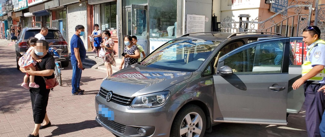 當(dāng)時(shí)氣溫達(dá)到34℃,而密閉的車(chē)內(nèi)溫度更是高達(dá)40℃以上,若孩子不能得到及時(shí)救助,很有可能中暑,甚至?xí)蛉毖醵a(chǎn)生窒息。河西中隊(duì)執(zhí)勤民警一邊安撫車(chē)內(nèi)孩子,一邊迅速聯(lián)系車(chē)主,幾分鐘后,家長(zhǎng)急匆匆跑來(lái),打開(kāi)車(chē)門(mén)將孩子救出。