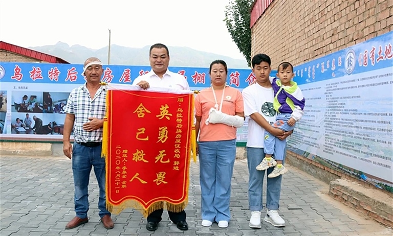 “太謝謝你了,你是我們一家四口的救命恩人,我們一輩子都會感激你?!毖壑酗柡瑹釡I的李永全緊緊握著郭進(jìn)的手說。8月21日一大早,李永全一家就趕到了郭進(jìn)的工作單位后旗房屋征收局,將一面寫有“英勇無畏舍己救人”的錦旗,送到了恩人郭進(jìn)的手中。
