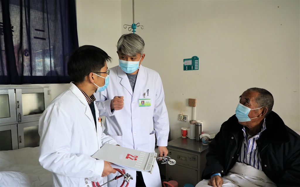 從2018年起,天津市10家醫(yī)院對(duì)甘肅省甘南藏族自治州人民醫(yī)院展開“組團(tuán)式”+“院包科式”幫扶。專家們通過科內(nèi)講課、檢查示范、手術(shù)示教等方式,向當(dāng)?shù)蒯t(yī)護(hù)人員傳授臨床經(jīng)驗(yàn)與專業(yè)技能。在東西部扶貧協(xié)作機(jī)制下,天津已累計(jì)選派99位醫(yī)學(xué)專家到甘南州人民醫(yī)院開展對(duì)口幫扶。新華社記者 張睿 攝