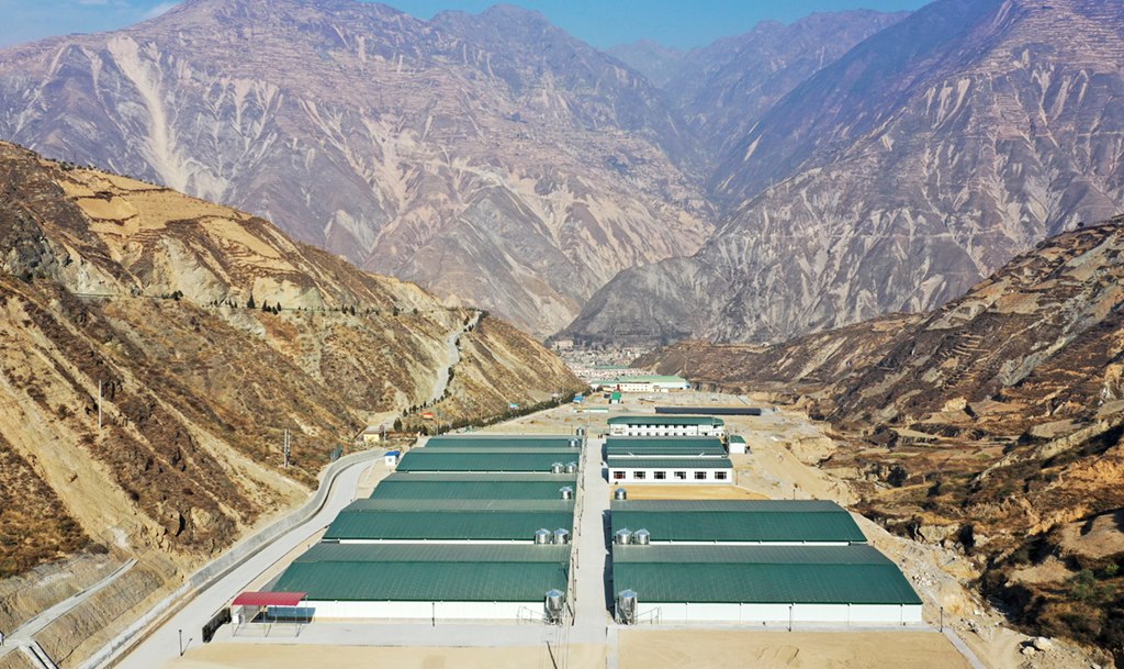 這是青島市幫扶建設(shè)的甘肅隴南市武都區(qū)康大肉兔養(yǎng)殖場(2021年1月19日攝,無人機(jī)照片)。