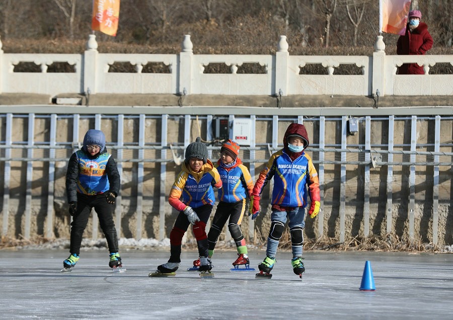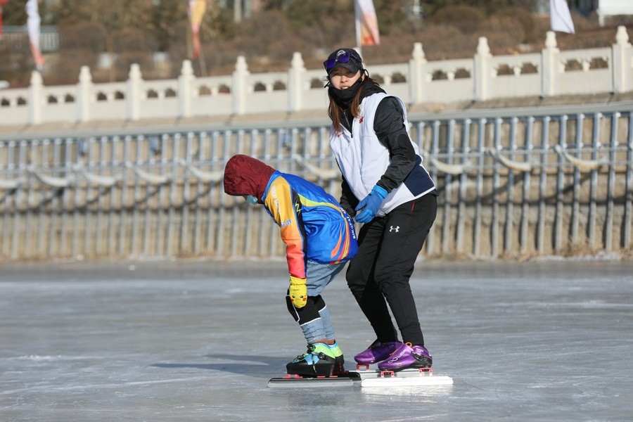 冰雪愛(ài)好者在東河冰雪場(chǎng)滑冰