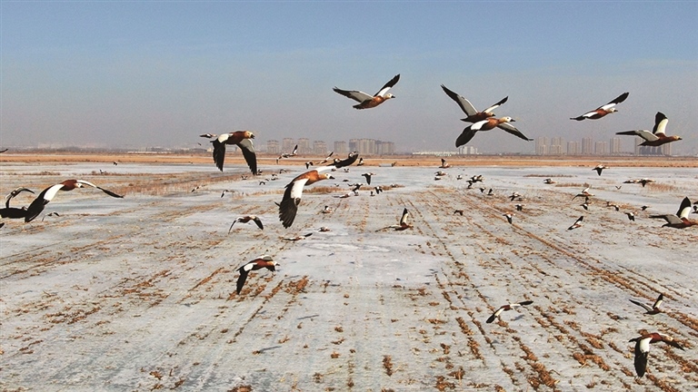 每年3—4月份,大批候鳥從南方來到鄂爾多斯市境內(nèi)黃河濕地上,之后繼續(xù)向北遷飛。近幾年,隨著生態(tài)環(huán)境不斷改善,候鳥數(shù)量與種類逐年增加。圖為達(dá)拉特旗境內(nèi),遷徙候鳥正在棲息覓食。(楊耀中)
