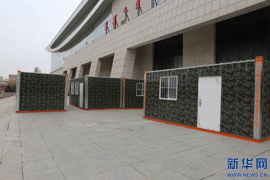 呼和浩特方艙庇護(hù)醫(yī)院入口處。(新華網(wǎng) 李倩)